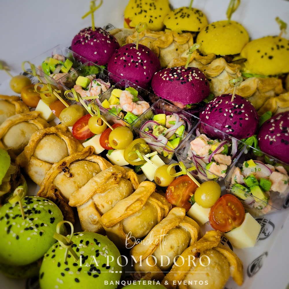 Exquisita box con 5 diferentes bocados, ideal para tener variedad a la hora de compartir.